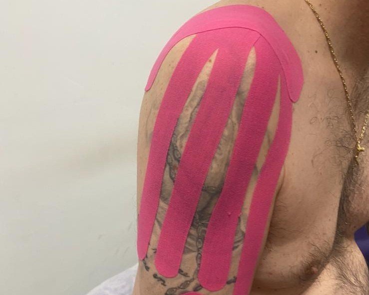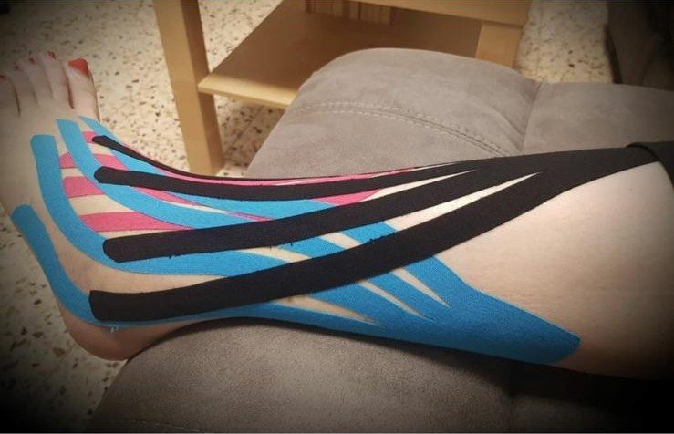 Aplicación de cintas elásticas para reducir inflamación, aliviar molestias y mejorar la movilidad.