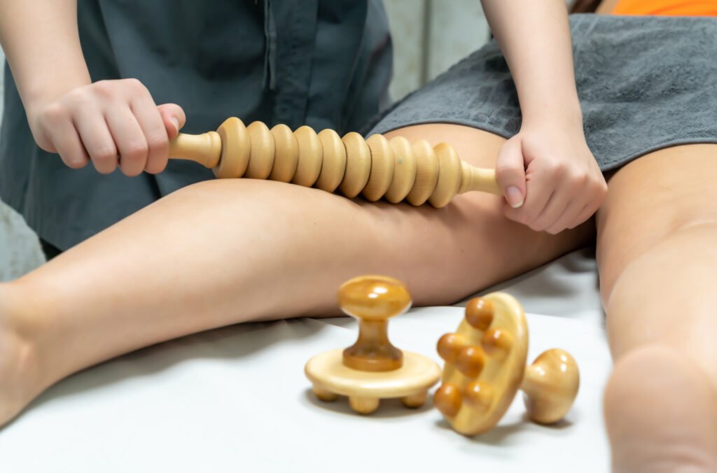 Técnica estética con herramientas de madera que estimula el cuerpo, mejora la circulación y tonifica la zona tratada.